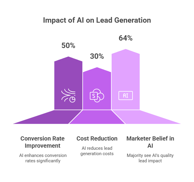 Studies show that AI tools can significantly enhance lead-generation efforts. According to McKinsey & Company, businesses that adopt AI in their lead generation efforts see a 50% improvement in conversion rates and a 30% reduction in costs. This illustrates the tangible benefits AI can bring to the table.